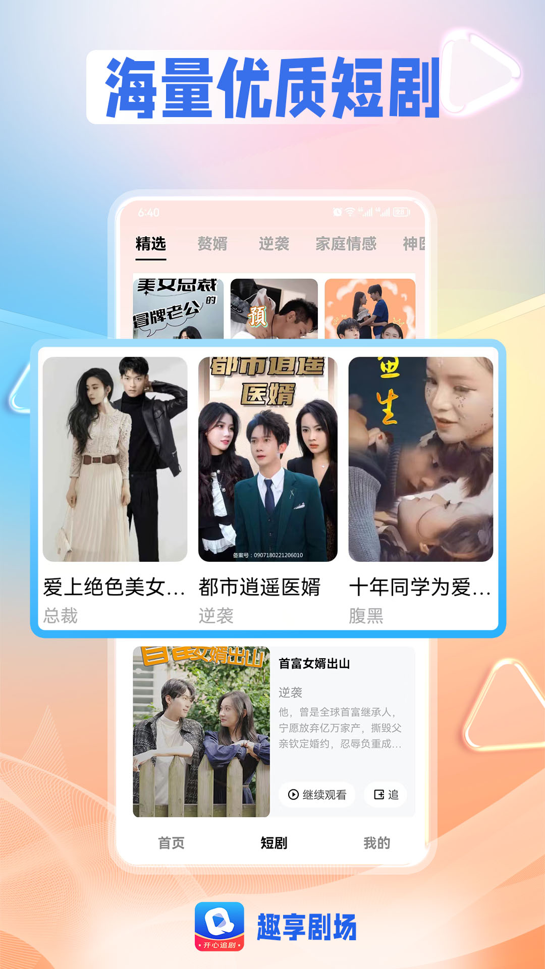 趣享剧场app是一款备受瞩目的短剧观看软件,是一个全国性的在线观看平台。可以随时随地欣赏各种优秀的短剧,并提供精彩的编剧和导演、大量高质量的剧集、对观众的个性化推荐、播放历史记录等诸多诱人的功能。它采用先进的推荐算法,完全免费。