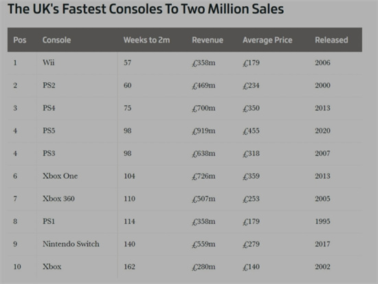 PS5英国销量超200万 是同销量最赚钱的主机