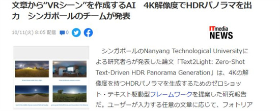 新加坡团队开发AI新工具 文本直接生产3DVR图像