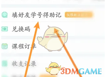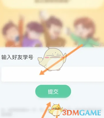 3。最后,在填写好友学号的助记页面,输入好友学号信息,选择并点击界面中的提交选项。