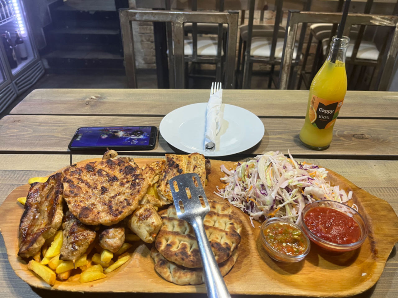 量大,适合像我一样喜欢吃肉的人。不需要指定店名,因为味道还不错,基本不会踩雷。我个人推荐科尔文广场旁边的Yugill,因为甜品香蕉船和水果杯都很不错。