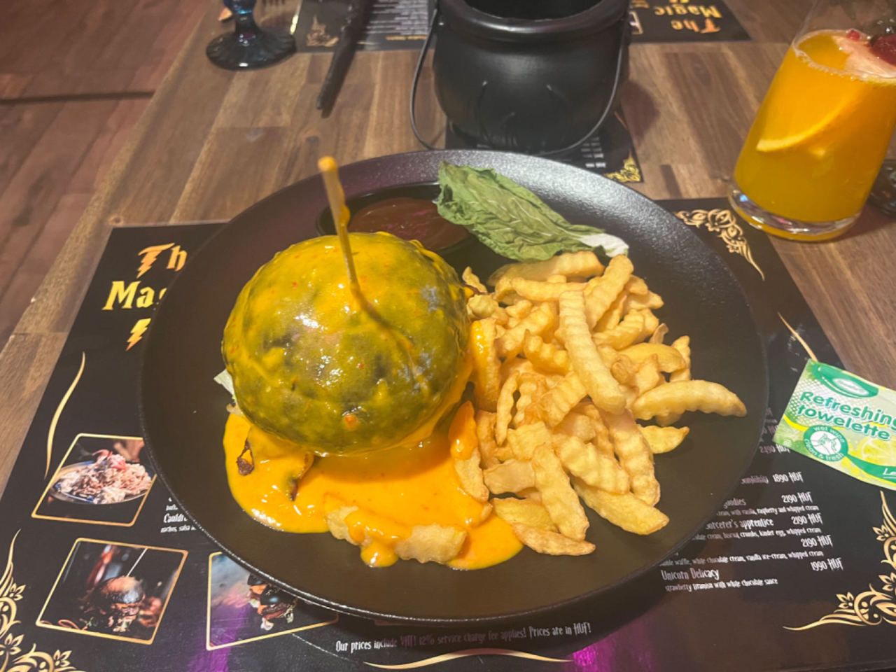 惠普主题风格,商店里到处都是会说话的肖像和巫师道具(如巫师帽和法杖)。食物主要是汉堡包,还有免费的魔术表演。当你去洗手间时,你会被桃金娘的笑声吓一跳。