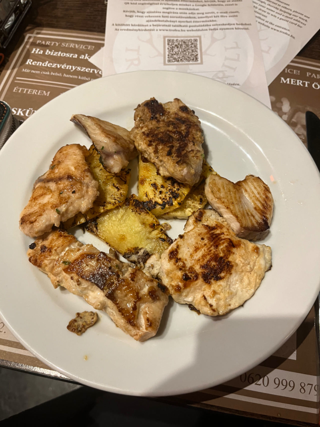 匈牙利肉也是又脆又脆。我个人认为它太咸了,所以我应该在吃完后喝很多水。上图最右边的是烤鸭腿。