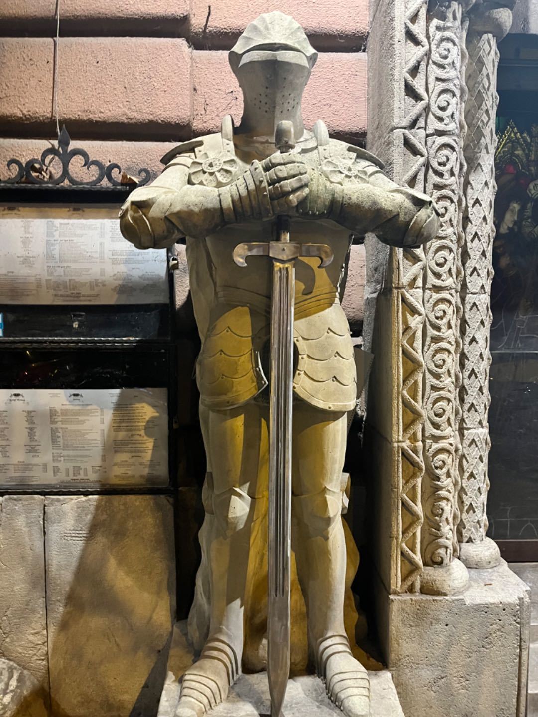姓名是兰斯洛特骑士爵士& # 39;餐厅里,所有的菜品都与亚瑟王和圆桌骑士有关。晚上营业。没有餐具,你应该用手拿所有东西(在洗手的水槽旁边)。装满香料的杯子有一种历史沧桑感,上菜的服务员也是古代仆人的装扮。中世纪风格的表演也是一大亮点。所以如果你是中世纪历史爱好者,那么这家餐厅可能是你最好的选择。
