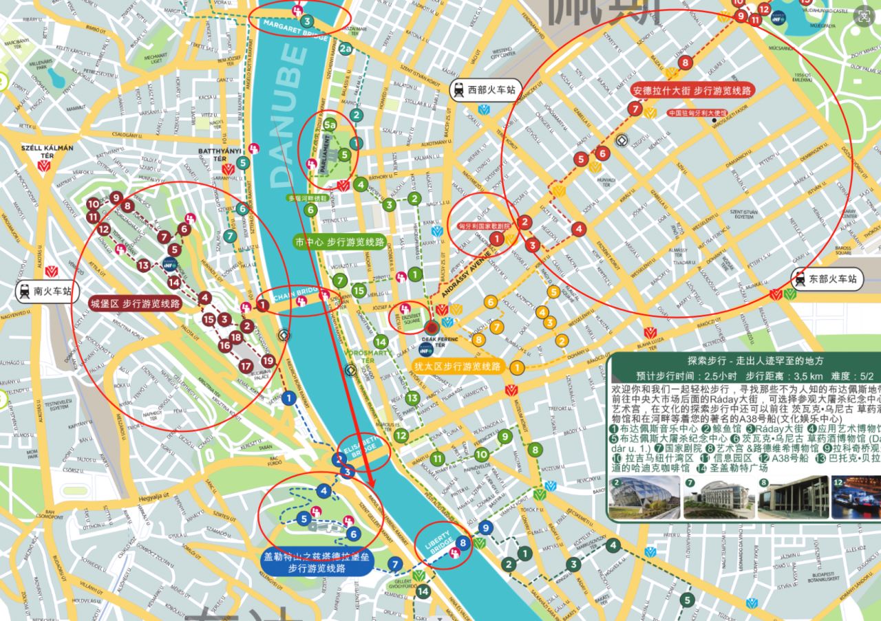 我个人的建议是布达和佩斯各分享一天。布达的景点呈直线连接,从盖勒特山一直向北延伸到渔人城堡。珀斯的景点比较分散,如果时间紧张,需要选择。你可以选择在犹太区、市中心和安德拉德街走一两条路,一路走下去会很累。善用地铁、公共汽车和有轨电车。懒人也可以选择乘坐多瑙河游船或电车欣赏多瑙河两岸和电车沿线的风景。