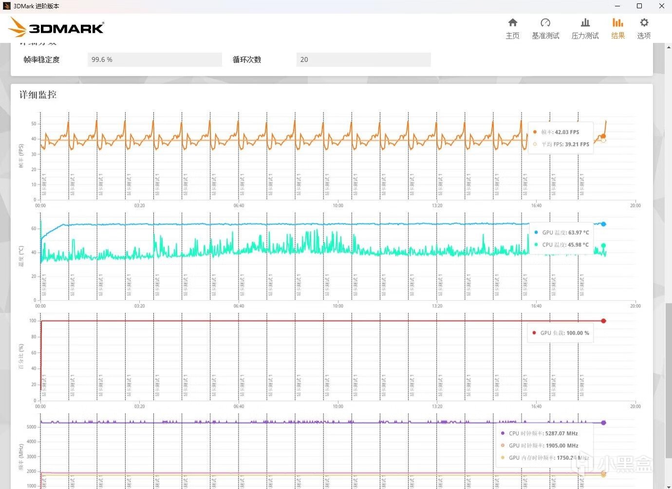 ▼运行一个3Dmark压力测试,TS模式,帧数稳定率为99.6%,非常稳定。