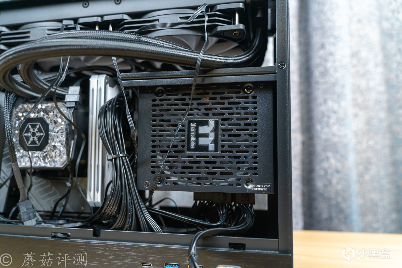 ▼电源采用TT钢影650W SFX电源,体积小巧。机箱内部空间会更大,散热更好。