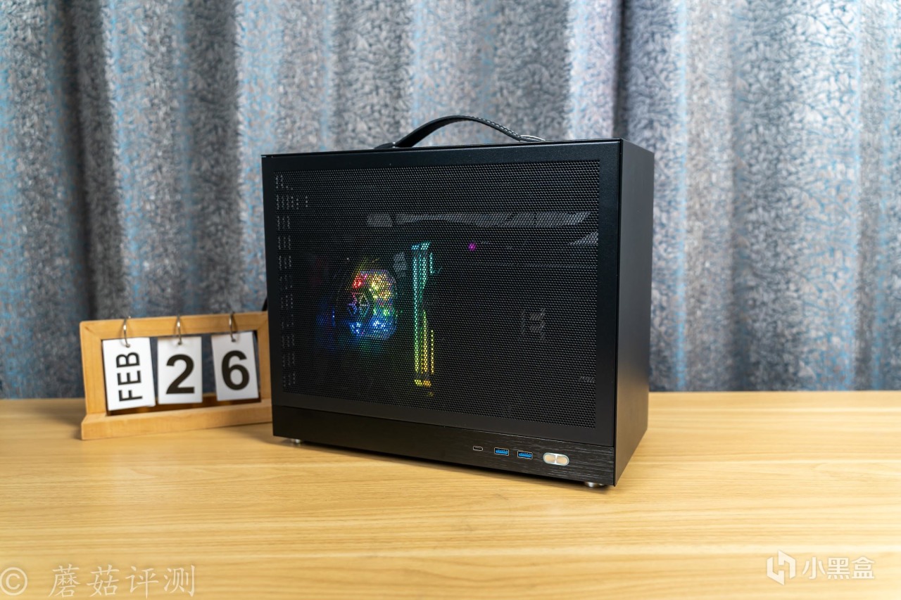 ▼机箱整体效果很小,顶部有把手,方便移动便携。