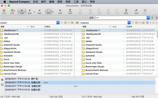 beyond compare macos最新版本是一款专业的文件和文件夹比较工具。与Scherlokk一样,最新版本的beyond compare macos允许您快速轻松地比较文件和文件夹。简单而强大的命令允许您关注您所关心的差异,而忽略其他差异。您可以合并更改、同步文件和生成日志报告。您可以高速比较整个驱动器和文件夹,只检查修改的大小和时间,或者彻底验证每个文件的字节。