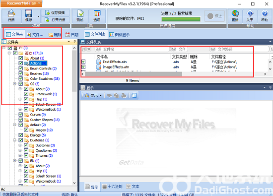 4.在我们等待恢复我的文件软件进行测试后,我们可以在软件界面的左侧看到检测到的文件和文件类型选项,并在界面的右侧看到详细的数据信息。我可以从下图中查看这些信息。