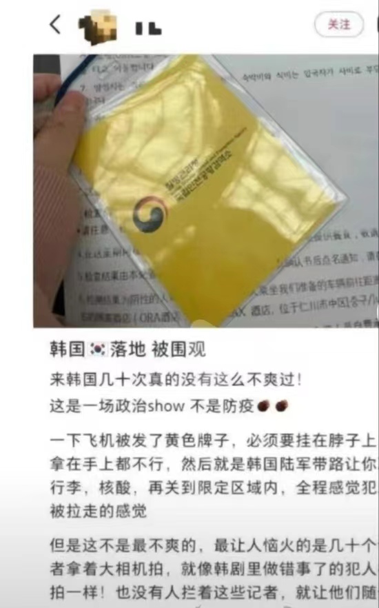 入境韩国被关小黑屋?网友直呼不爽中国人入境韩国遭受不公待遇,一旦落地就会被直接拉到“小黑屋”隔离。本站内每天提供相关有趣好玩的资讯信息,让你随时了解更多有趣的信息,大量的帖子每天都在不断更新,欢迎来2023-01-13 15:18:41 -