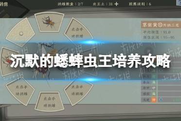 《沉默的蟋蟀》攻略——虫王培养攻略沉默的蟋蟀游戏中虫王怎么培养可能很多玩家不太清楚,不知道有什么培养技巧。下面小编给大家带来沉默的蟋蟀虫王培养攻略,感兴趣的小伙伴一起来了解一下吧。更多内容请关注《沉2023-08-02 19:01:03 -