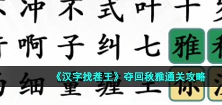 汉字找茬王夺回秋雅怎么过 夺回秋雅通关攻略汉字找茬王夺回秋雅怎么过?汉字找茬王是一个以汉字为关卡主题的一个汉字解谜游戏,游戏中有着超级多的关,很多的关卡还和当下热门的内容有关,超级多有意思的关卡。其中有一个关2023-07-12 08:43:01 -