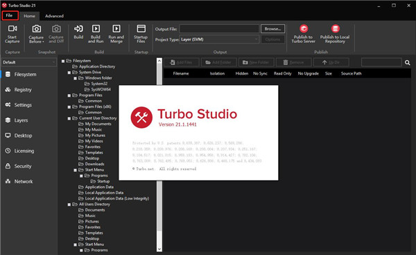 Turbo Studio 21破解版是一款面向编程开发者的程序打包软件。这个软件可以在许多不同的系统上使用。我们不仅可以通过Turbo Studio 21中文版对程序进行打包,还可以提供一个虚拟的环境来运行和测试程序,让你发现程序开发过程中的漏洞。