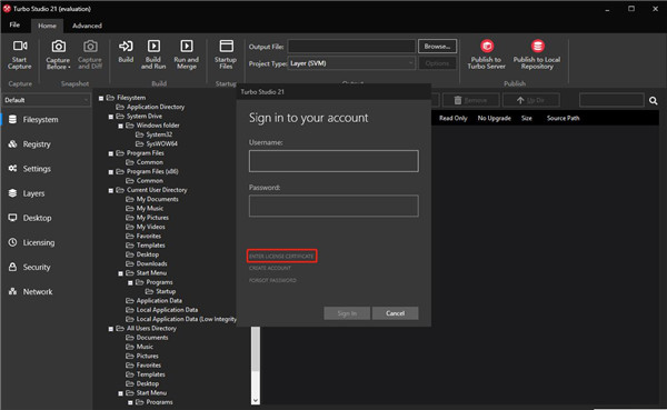 将应用直接从Turbo Studio发布到任何支持的部署模块,包括独立的EXE、MSI、Turbo Server和Turbo.net云。