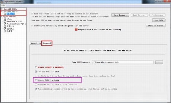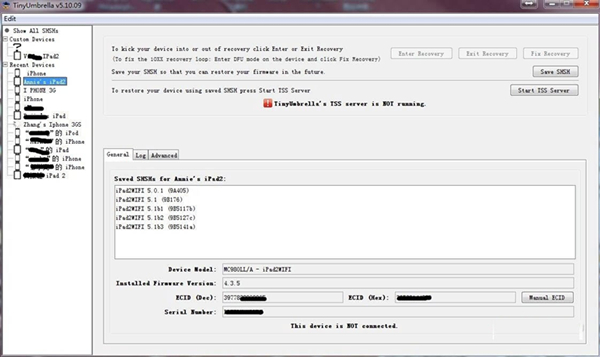 当然TinyUmbrella的开发者已经告诉你为什么要保存SHSH blob了。即每当新固件出来,苹果都会停止验证旧固件,使其无法恢复到旧固件(简称“无法降级”)。